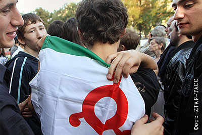 На акции памяти убитого владельца сайта "Ингушетия.ру" Магомеда Евлоева в Новопушкинском сквере