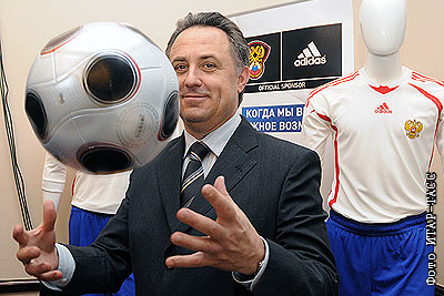 Министр спорта, туризма и молодежной политике Виталий Мутко перед началом подписания договора о сотрудничестве между компанией Adidas и РФС