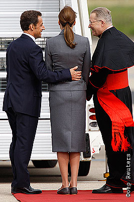 Николя Саркози и Карла Бруни встречают Папу Римского Бенедикта XVI в парижском аэропорту Орли