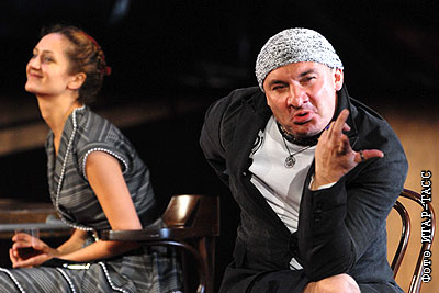 Актеры Виктория Исакова и Николай Фоменко в спектакле "Саранча" на сцене театра им. А.С.Пушкина