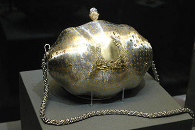 Вечерняя сумочка, выполненная из золота, серебра и брилиантов, на выставке "Буччеллати. Искусство вне времени" в музее московского Кремля