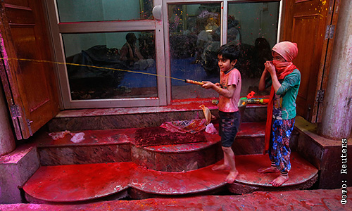 В Индии проходит ежегодный популярный индуистский праздник весны, иначе называемый "Фестиваль красок".