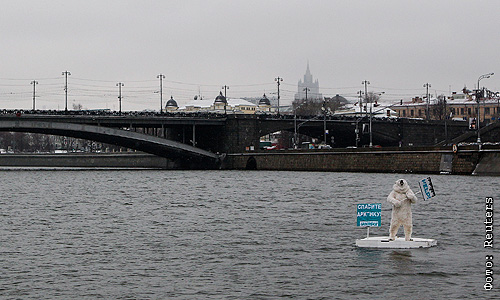 Активист экологической организации Greenpeace в костюме медведя проплыл в понедельник по Москве-реке в центре столицы. Как сообщается на сайте Greenpeace, акция должна была обратить внимание на экологическую ситуацию в Арктике, где в ближайшем будущем может начаться добыча полезных ископаемых.