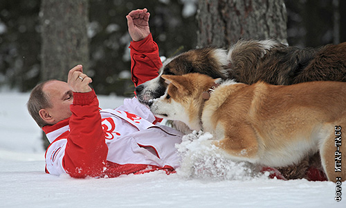Опубликованы фотографии, сделанные 24 марта во время прогулки президента Владимир Путина в Подмосковье. Президент гуляет со своими собаками: болгарской овчаркой Баффи и акита-ину Юмэ.