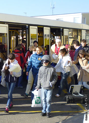 Встреча школьников, попавших в ДТП в Бельгии, в аэропорту города.