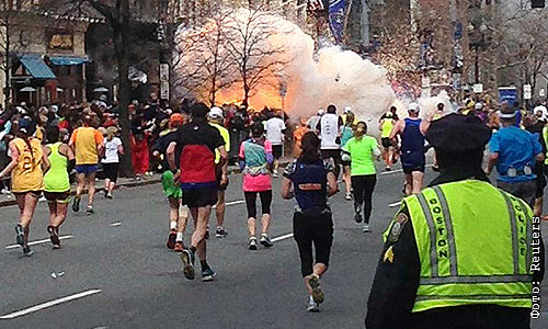 На финишной черте Бостонского марафона прогремело два взрыва.