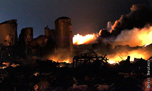 Сильнейший взрыв прогремел в среду вечером на заводе по производству минеральных удобрений, расположеном в небольшом городе Вест, штат Техас