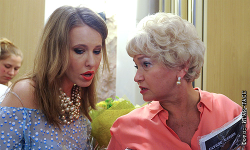 Телеведущая Ксения Собчак и политик Людмила Нарусова (слева направо) на очередных "Пионерских чтениях" в Мемориальной синагоге.