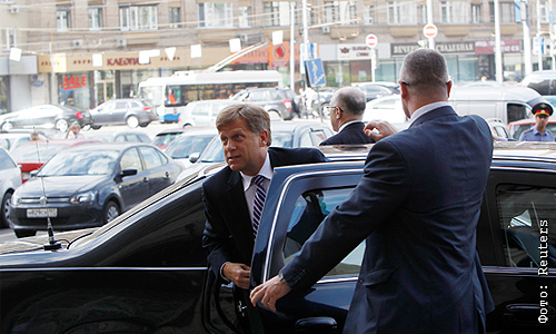 Посол США в России Майкл Макфол, вызванный в МИД РФ в связи с задержанием в Москве сотрудника американской дипломатической миссии, у здания Министерства иностранных дел РФ.
