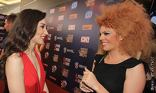 Певицы Виктория Дайнеко и Анастасия Стоцкая (слева направо) на церемонии вручения русской музыкальной премии телеканала RU.TV 2013.