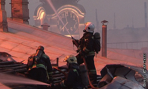 Сообщение о пожаре поступило дежурному в среду в 21:30. Через несколько минут на место прибыли первые пожарные расчеты. В 21:54 пожару был присвоен второй номер сложности, который в дальнейшем был изменен на третий. Горели чердак и кровля.