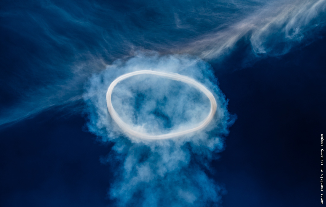 Вулкан Этна, самый активный вулкан Европы, выпускает в небо вихревые кольца, состоящие из смеси дыма, пара и газов