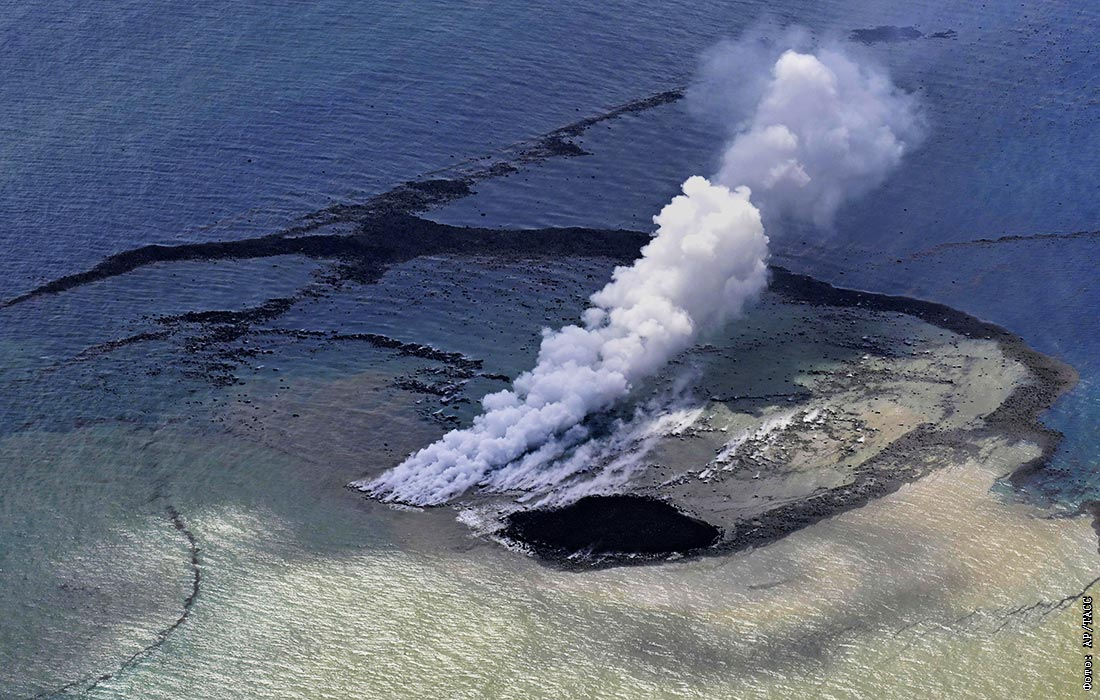 Новый остров диаметром 100 метров образовался в результате извержения подводного вулкана на территории национального парка Огасавара