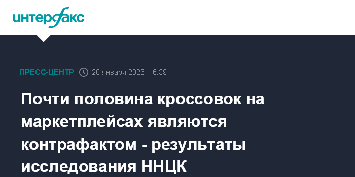 "Доля контрафакта кроссовок и кед на маркетплейсах составляет 49%. Эта внушительная цифра демонстрирует масштаб проблемы и необходимость принятия мер по защите рынка", - сказала Бушина на пресс-конференции в центральном офисе "Интерфакса" во вторник, посвященной результатам проведенного в IV квартале 2025 года исследования по определению доли контрафактной продукции в онлайн-каналах на рынке брендовой спортивной обуви - кроссовок и кед.