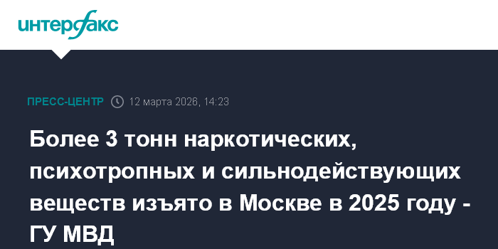 Более 3 тонн наркотических, психотропных и сильнодействующих веществ изъято в Москве в 2025 году - ГУ МВД
