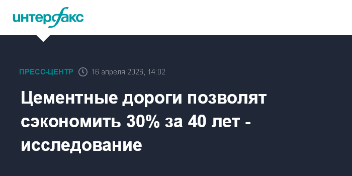 "Строительство и эксплуатация автомобильных дорог с цементобетонными покрытиями по сравнению с асфальтобетонными позволит снизить расходы консолидированного бюджета Российской Федерации по данным мероприятиям почти на 30% в ближайшие 40 лет", - говорится в исследовании Финансового университета, представленном на пресс-конференции в "Интерфаксе".