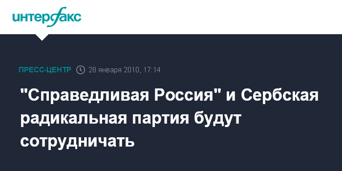 Москва. 28 января. ИНТЕРФАКС - Руководитель фракции "Справедливая Россия" в Госдуме РФ Николай Левичев и заместитель председателя Сербской радикальной партии (СРП) Драган Тодорович подписали в четверг в центральном офисе "Интерфакса" договор о сотрудничестве между двумя партиями.