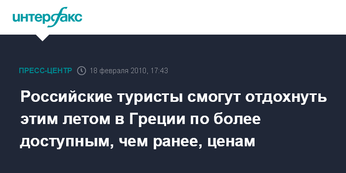Москва. 18 февраля. ИНТЕРФАКС-ТУРИЗМ – Этим летом у россиян появятся новые возможности для отдыха в Греции. Кроме того, с учетом падения курса евро, он может стать и гораздо более доступным, чем год назад, сообщили представители Национального офиса по туризму этой страны, Генерального консульства Греции в Москве, а также туристической компании "Музенидис Трэвел" на пресс-конференции в "Интерфаксе" 18 февраля.