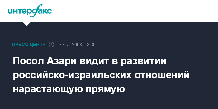 Посол Азари видит в развитии российско-израильских отношений нарастающую прямую