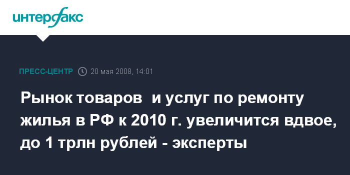 Объем российского потребительского рынка товаров и услуг, связанных с ремонтом жилья, к 2010 году может увеличиться почти вдвое - до 1 трлн рублей.