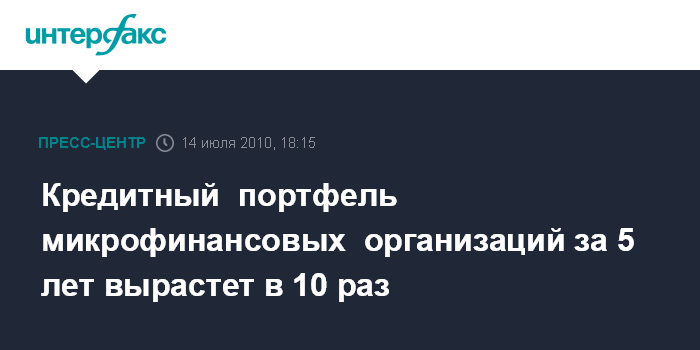 Кредитный портфель микрофинансовых организаций РФ начнет расти уже в третьем квартале 2010 года, а с момента вступления в силу закона о микрофинансировании за пять лет может вырасти в десять раз