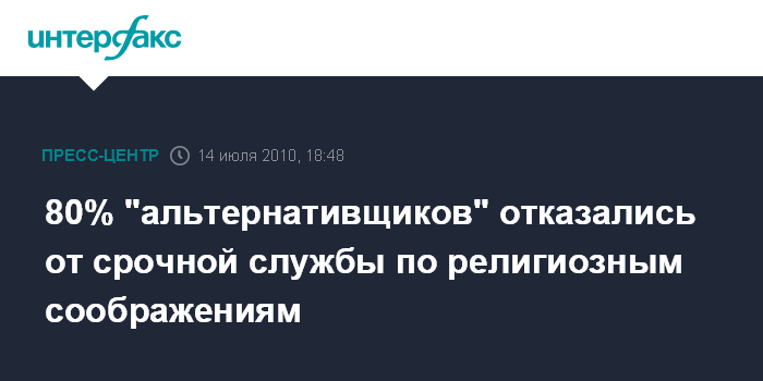 80% "альтернативщиков" отказались от срочной службы по религиозным соображениям