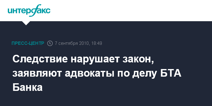 Адвокаты фигурантов дела о хищениях в БТА Банке на пресс-конференции в "Интерфаксе" заявили о том, что следствие по делу их подзащитных ведется с нарушением закона.