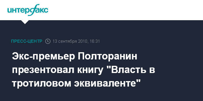 В понедельник на пресс-конференции в "Интерфаксе" М.Полторанин представил свою новую книгу "Власть в тротиловом эквиваленте", в которой изложил свои взгляды на причины распада СССР, эпоху, когда Россию возглавлял президент Борис Ельцин, и нынешнюю ситуацию в стране.