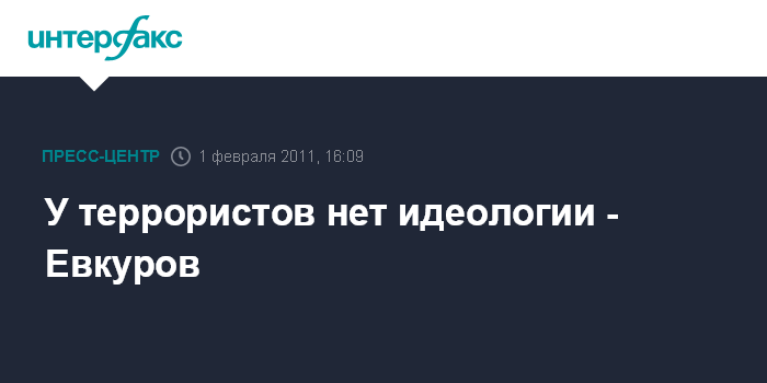 Ю.-Б.Евкуров считает, что у террористов, организовавших взрыв в московском аэропорту "Домодедово" и другие крупные теракты в стране, нет четкой идеологии. "У них нет никакой идеологической, сильно обозначенной, платформы. Есть только прикрытие идеологией и какими-то мифическими идеями", - заявил он.