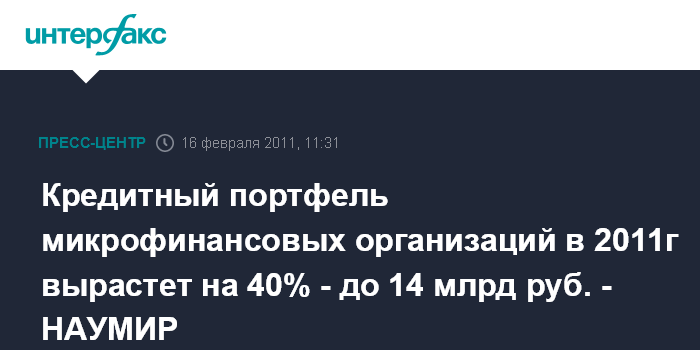 Кредитный портфель микрофинансовых организаций в 2011г вырастет на 40% - до 14 млрд руб. - НАУМИР