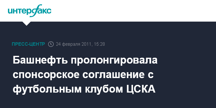 Москва. 24 февраля. ИНТЕРФАКС-АНИ - "Башнефть" пролонгировала спонсорское соглашение с профессиональным футбольным клубом ЦСКА в четверг в центральном офисе агентства "Интерфакс".