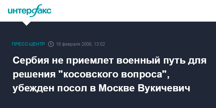 - Посол Сербии в РФ Станимир Вукичевич считает, что независимость Косово станет международным прецедентом и что Москва сама должна принять решение в отношении непризнанных государств.