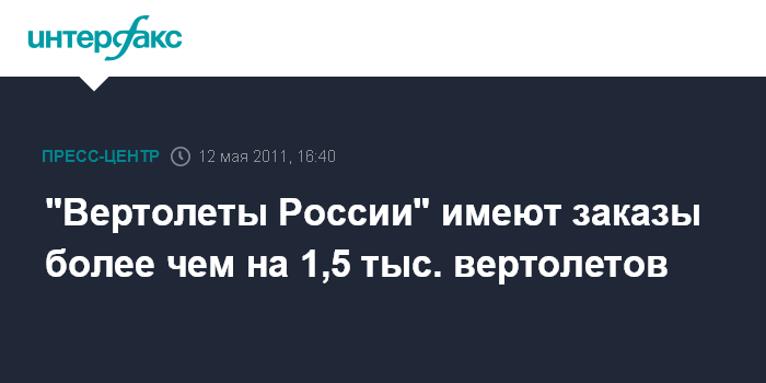 По словам А.Реуса, в 2010 году "Вертолетами России" было построено 214 вертолетов. В 2011 году будет построено 260, а в 2012 году - свыше 300 вертолетов. "Соответственно портфель заказов в шесть раз превышает то, что мы сделаем в этом году. Мы растем каждый год", - отметил он.