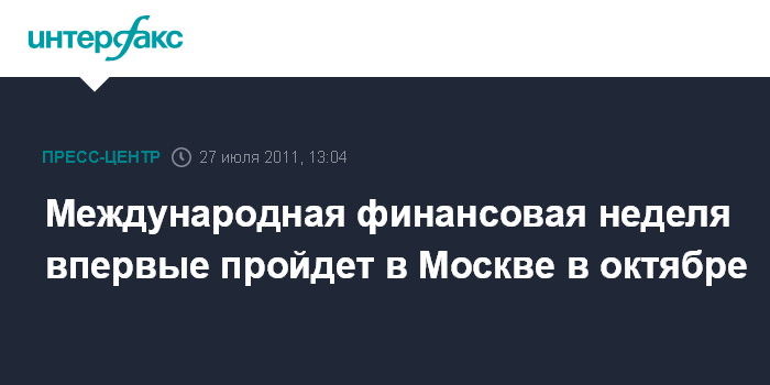 Московская международная финансовая неделя пройдет в Москве 18-20 октября 2011 года. Первый вице-президент Гильдии финансистов Алла Грязнова подчеркнула, что это мероприятие проводится в России впервые.
