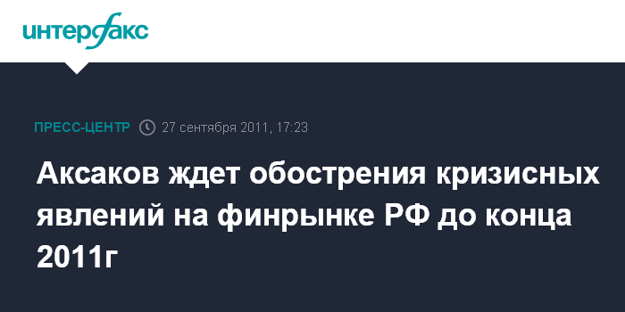 Аксаков ждет обострения кризисных явлений на финрынке РФ до конца 2011г
