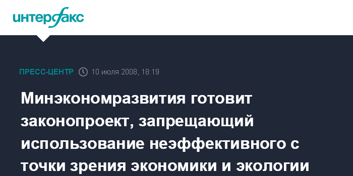 Москва. 10 июля. ИНТЕРФАКС - Минэкономразвития к концу осени подготовит поправки в закон о техническом регулировании, которые будут запрещать использование энергорасточительного оборудования, заявил в четверг начальник отдела энергоэффективности и экологии министерства Олег Плужников на пресс-конференции в центральном офисе агентства "Интерфакс".