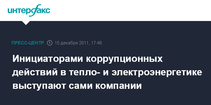 Инициаторами коррупционных действий в тепло- и электроэнергетике выступают сами компании