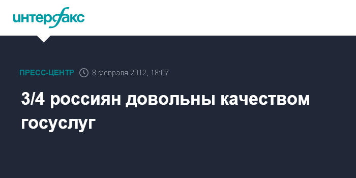 Москва. 8 февраля. ИНТЕРФАКС – Почти три четверти россиян довольны качеством предоставляемых российскими ведомствами государственных и муниципальных услуг. Как свидетельствует опрос, проведенный Российской академией народного хозяйства, качество госуслуг оценивает как хорошее и очень хорошее 74,6% респондентов, опрошенных в ноябре 2011 года в 20 субъектах РФ.