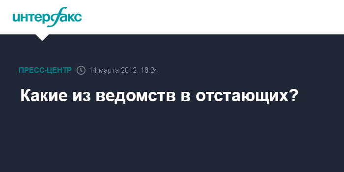 Ну из сводного отчета ведомств видно, назову лидеров, что запланированы мероприятия из 23 ведомств выполнили только 5. Это Банк России, Минобороны, Федеральная антимонопольная служба, ФТС России, Роскомнадзор. Отстающие у нас - это МЧС, Минюст, Минфин, Минкомсвязь, Минтранс, МВД, Росрыболовство.