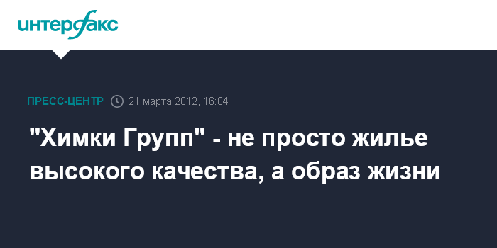 "Химки Групп" - не просто жилье высокого качества, а образ жизни
