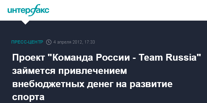 В РФ создан проект "Команда России - Team Russia", направленный на привлечение внебюджетного финансирования в спортивную сферу и популяризацию здорового образа жизни