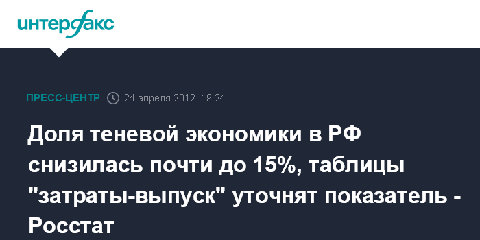 "Первые оценки размеров теневой экономики были выполнены как раз на стадии разработки таблиц "затраты-выпуск" за 1995 год. Они тогда составили 22-23% (оценки доли теневой экономики - ИФ). На основе этого поняли, что теневая экономика большая и стали разрабатывать методики, на основе которой на регулярной основе досчитывали объемы производства по видам экономической деятельности", - сказала замглавы Росстата.