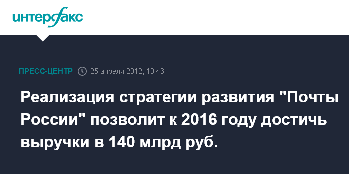 Реализация стратегии развития "Почты России" позволит к 2016 году достичь выручки в 140 млрд руб.