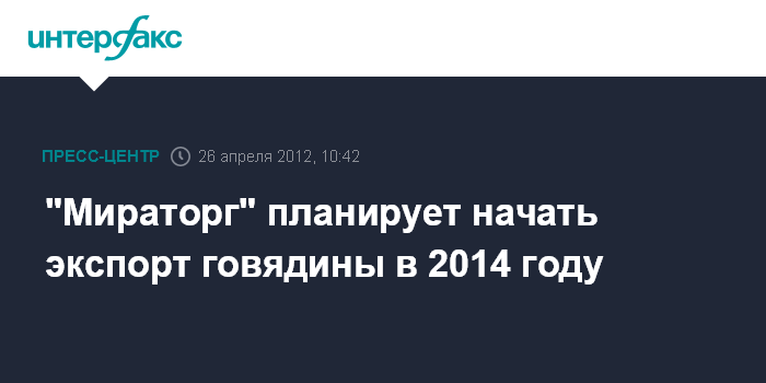 Москва. 25 апреля. ИНТЕРФАКС - АПХ "Мираторг" планирует в 2014 году начать экспорт говядины, заявил журналистам президент холдинга Виктор Линник по итогам пресс-конференции, состоявшейся в центральном офисе "Интерфакса" в среду.