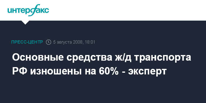По данным исследований ИПЕМ, недостаток средств привел к износу основных фондов железнодорожного транспорта более чем на 60%.