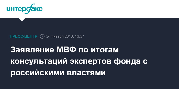 Заявление МВФ по итогам консультаций экспертов фонда с российскими властями