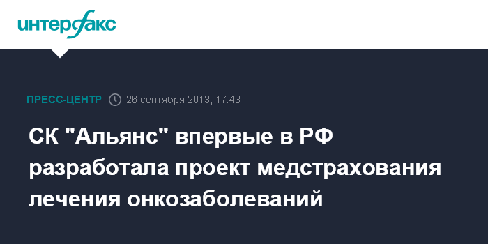 Москва. 26 сентября. ИНТЕРФАКС-АФИ - СК "Альянс" и ГК "Европейский медицинский центр" (GEMC) впервые в РФ разработали программу по лечению онкологических заболеваний в рамках добровольного медицинского страхования, сообщил первый заместитель генерального директора СК "Альянс" Дмитрий Попов на пресс-конференции в центральном офисе агентства "Интерфакс".