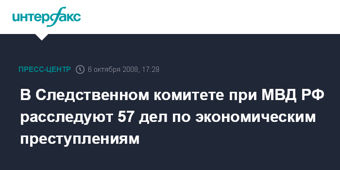 В Следственном комитете при МВД РФ расследуют 57 дел по экономическим преступлениям