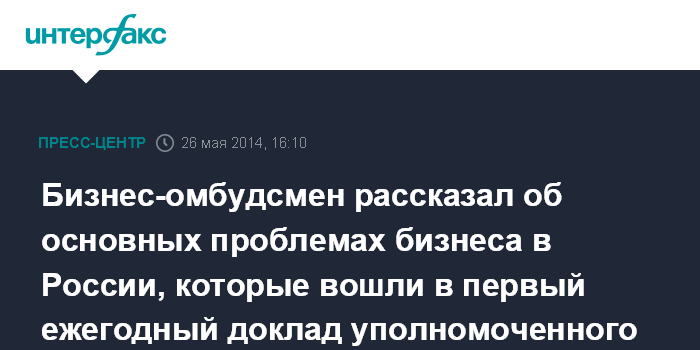 Бизнес-омбудсмен рассказал об основных проблемах бизнеса в России, которые вошли в первый ежегодный доклад уполномоченного президенту РФ