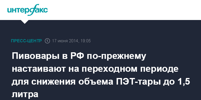 Крупные пивоваренные компании по-прежнему настаивают на введении в РФ переходного периода для сокращения допустимого объема пластиковой тары для розлива пива до 1,5 литра.
